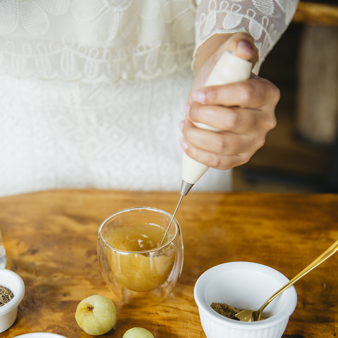 Invite a little calm into your cup. Our Electric Mixer blends your drink into a smooth, softly-frothed moment of ease. A small daily ritual to help you slow down and savour.